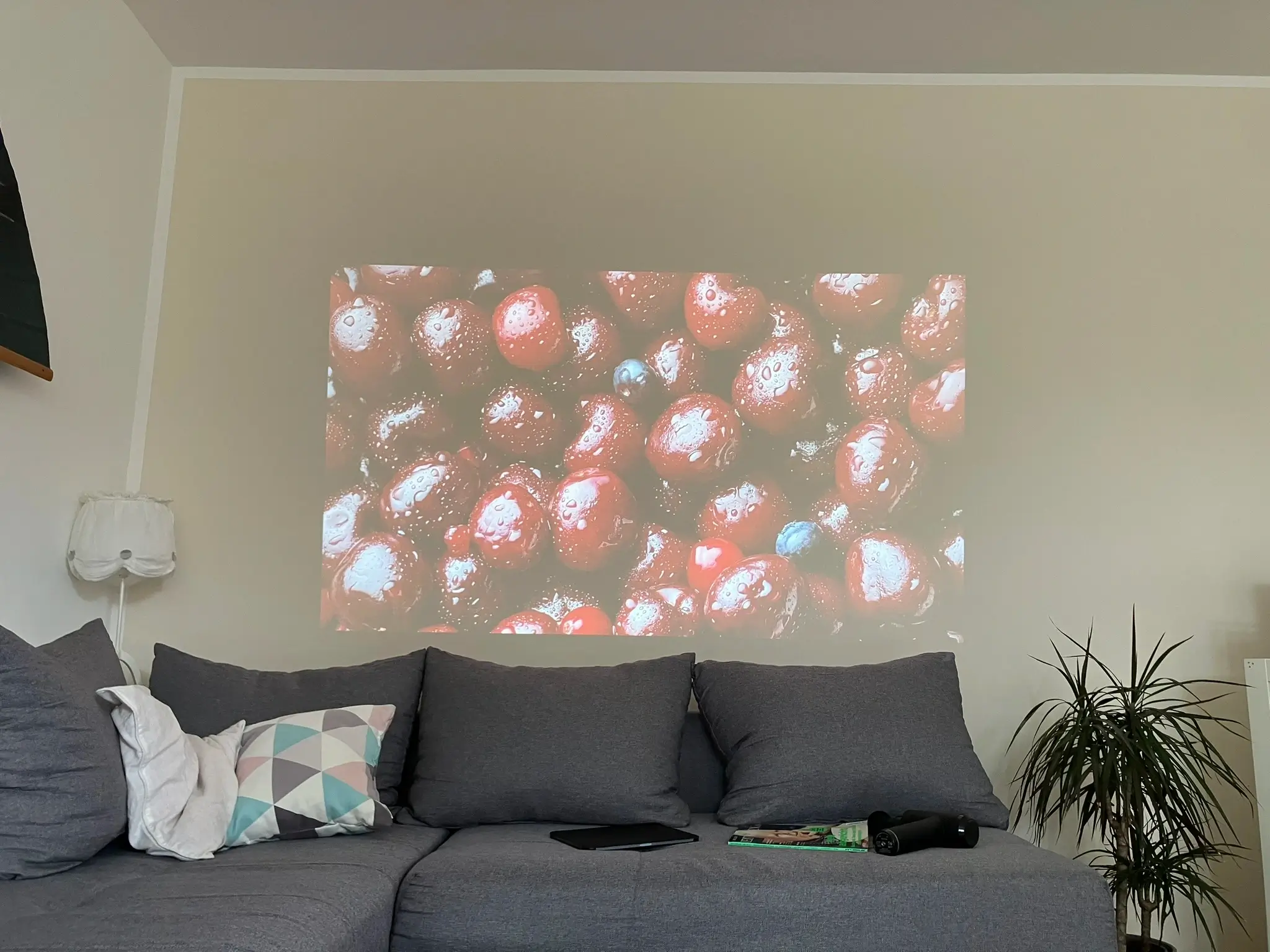 Die heutzutage eher dunklen 3.600 ANSI Lumen haben eine ausreichend helle Projektion ermöglicht, die allerdings bei abgedunkeltem Raum noch besser ist. Es war zu erkennen, dass die Bild- und Farbqualität zum Rande des Bildes hin abnimmt. Dies deckt sich mit der im Datenblatt angegeben Uniformität von nur 80%.